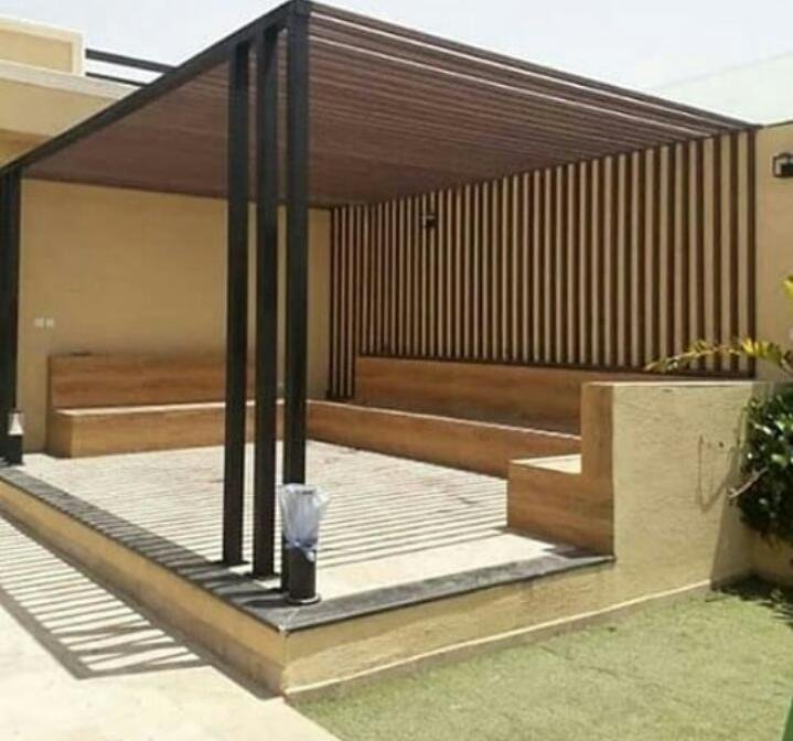 - تنفيذ برجولات خشبية وحديدية للحدائق والاستراحات بتصاميم فاخرة.